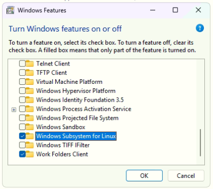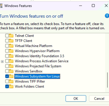 (1) "Windows Subsystem for Linux" to enable the WSL installation