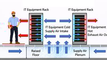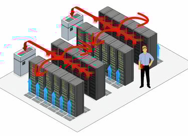One of the main goals of data center HVAC design is to prevent the mixing of hot and cold air. When warm exhaust air from servers mixes with the cold supply air, cooling efficiency drops and hotspots can form. This phenomenon is known as air recirculation or short-circuiting.