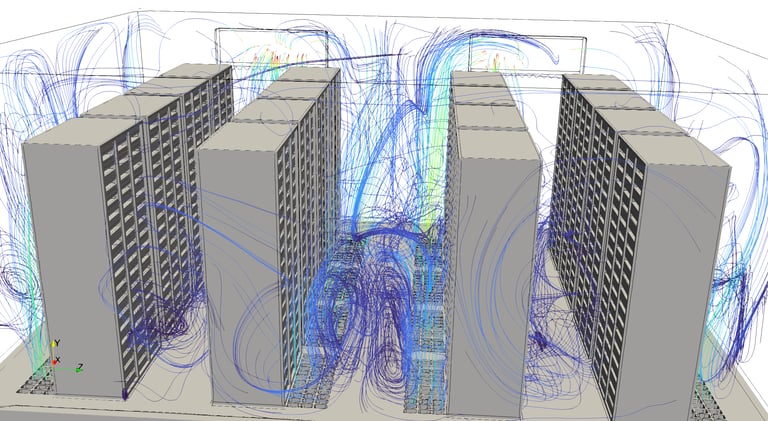 Modern data center HVAC design increasingly relies on Computational Fluid Dynamics (CFD) simulation. CFD allows engineers to model airflow, temperature distribution, pressure fields, and heat transfer throughout the data center before construction or modification.