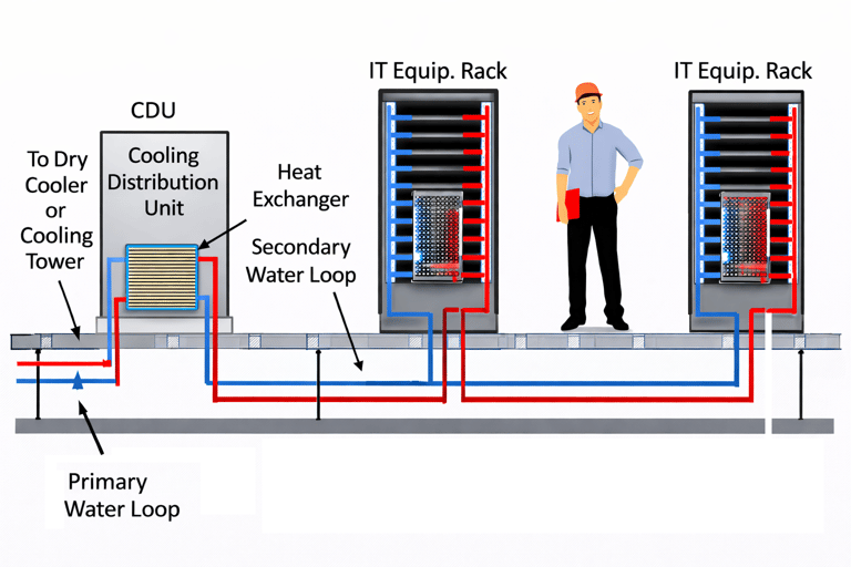While water cooling offers higher efficiency and supports higher rack power densities, it introduces additional complexity. It requires piping networks, leak detection systems, and careful maintenance to prevent risks to sensitive electronic equipment.