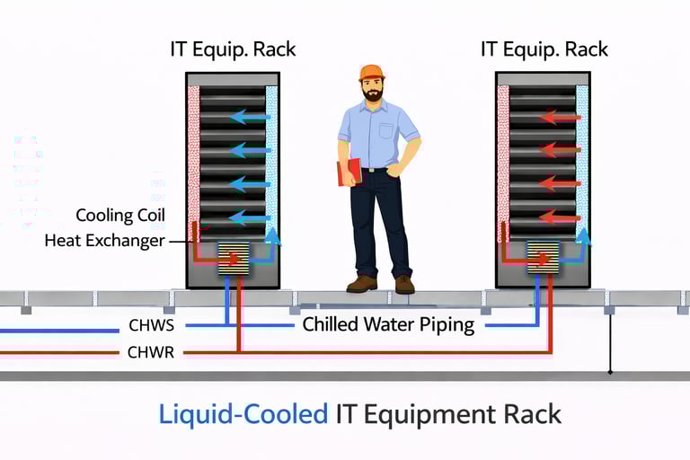 As server power density increases, traditional room-based cooling becomes less effective. Close-coupled cooling brings the cooling source closer to the heat source, reducing airflow path length and improving efficiency.