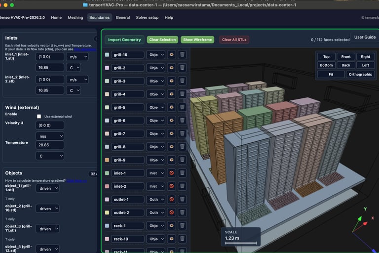 tensorHVAC-Pro is a simulation-based platform that integrates HVAC modeling and CFD analysis for data center applications. It enables engineers to test multiple cooling strategies, compare air and water cooling options, analyze raised floor versus close-coupled cooling designs, and predict thermal performance under different operating conditions.