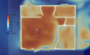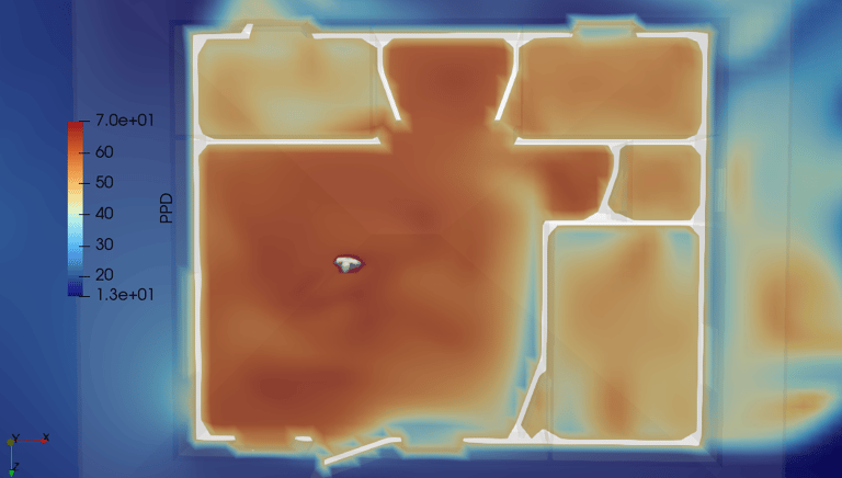 Draft Rate (DR): Quantifies discomfort due to local air movement, indicating areas with potential drafts.