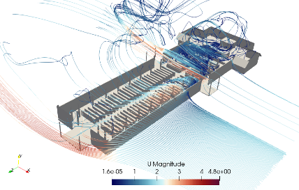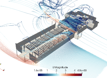 Flow and thermal simulations are critical in spaces with concentrated heat loads, such as data centers or laboratories. CFD ensures that cold air reaches equipment efficiently and prevents hot spots.