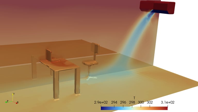 In practical applications, CFD enables engineers to visualize and validate complex airflows in spaces like classrooms, offices, or atriums.