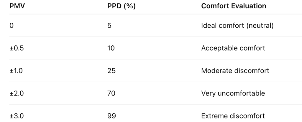 PMV = 0 → PPD = 5% (ideal).