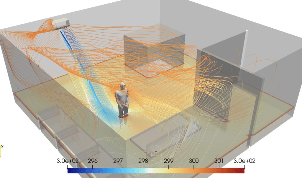 CFD simulation coupled with comfort models allows designers to map PMV and PPD across the building, ensuring both thermal comfort and energy optimization.