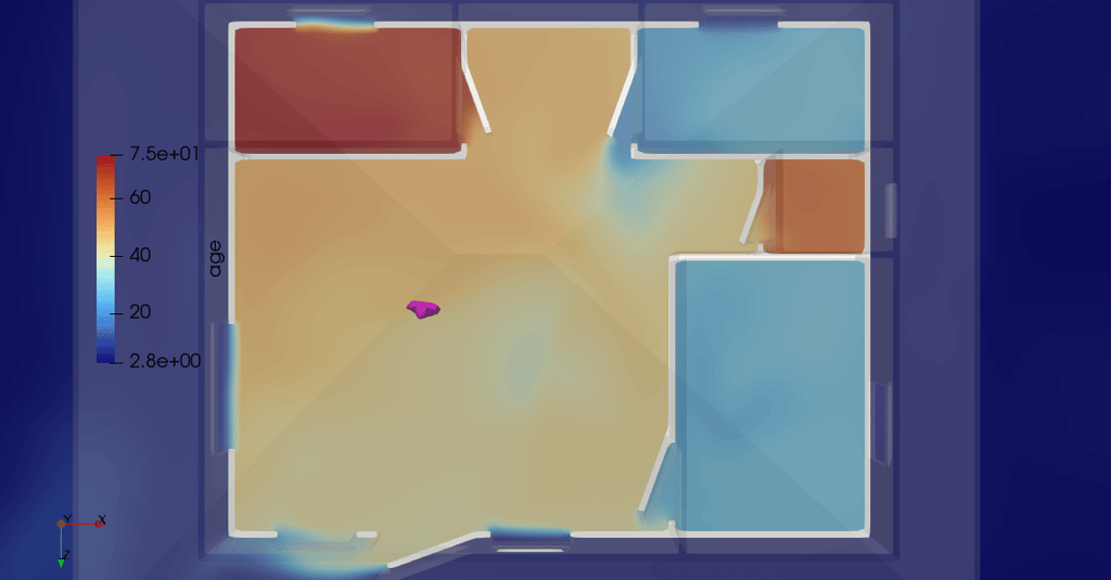 Ventilation standards such as ASHRAE 62.1 emphasize maintaining healthy indoor air. HVAC simulation helps visualize contaminant dispersion, CO₂ accumulation, and airflow paths that might cause recirculation of stale air. CFD results can guide placement of return vents and filters to enhance IAQ and occupant health.
