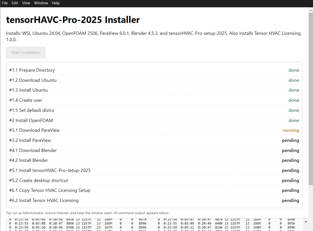 You can also uninstall your existing WSL by using Uninstaller tensorHVAC-Pro-2025.1.2, and check all the installation including WSL and OpenFOAM.