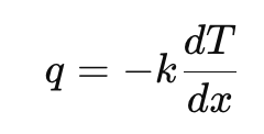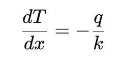 The relationship between heat flux and temperature gradient is given by Fourier’s Law of Heat Conduction: