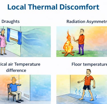 Thermal comfort is not determined by air temperature alone. In indoor environments, people exchange heat with their surroundings through convection, radiation, evaporation, and conduction. Among these mechanisms, radiative heat transfer plays a critical role, which is why concepts such as Mean Radiant Temperature (MRT) and Operative Temperature are fundamental in thermal comfort analysis and HVAC design.