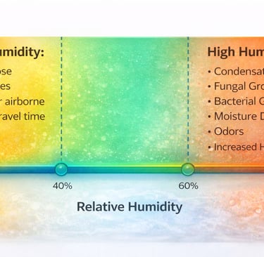 On the other hand, high relative humidity, generally above 70 %, interferes with the evaporation of sweat. As a result, the body struggles to release heat efficiently, making the air feel much hotter than the actual measured temperature. This condition often causes sensations of stickiness, fatigue, and general discomfort. High humidity also creates favorable conditions for mold growth, unpleasant odors, and reduced indoor air quality, especially in poorly ventilated spaces.